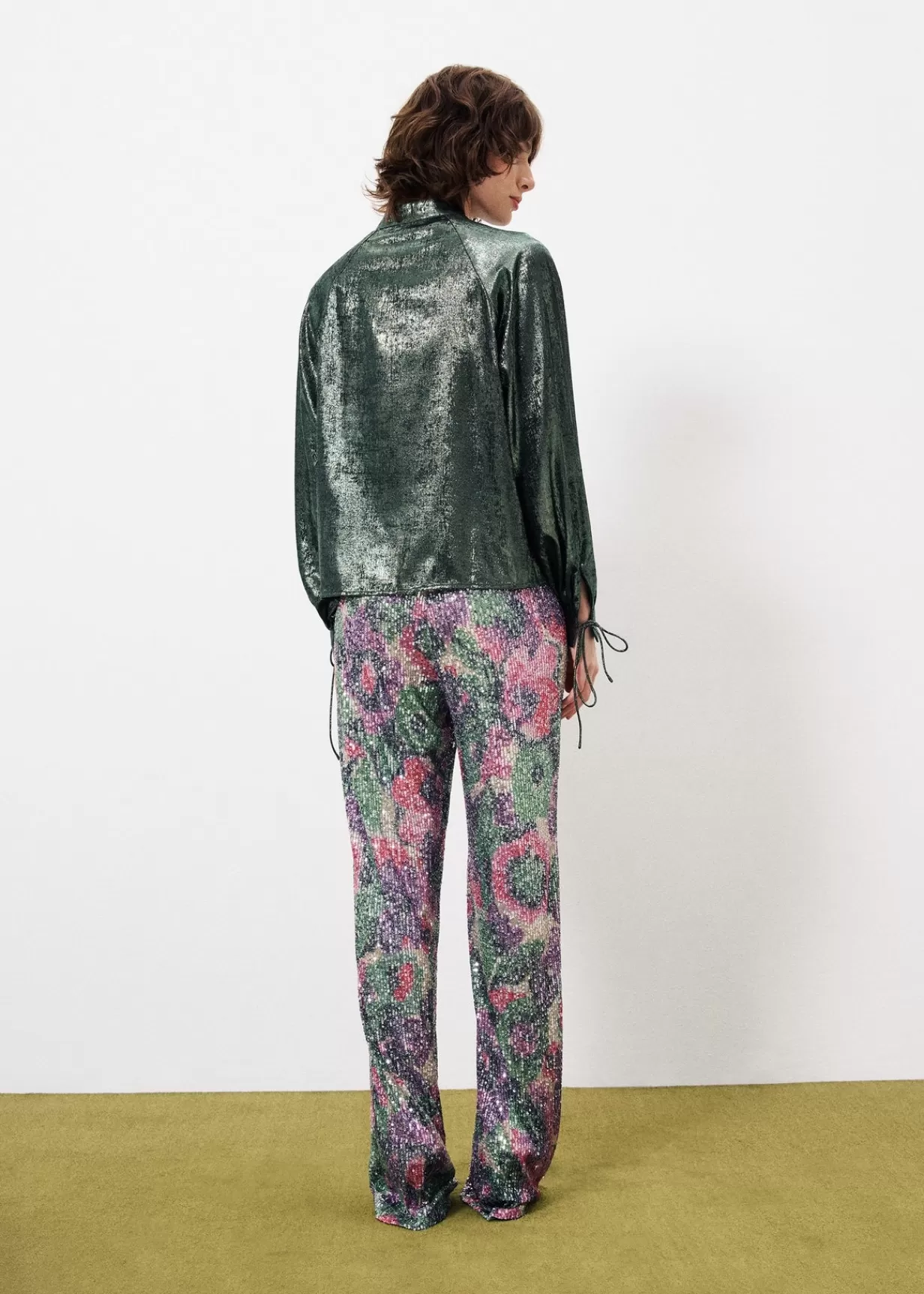 • Chemise manches longues• Manches raglan• Col V avec nœud• Tissu brilliantTaille :La mannequin porte une taill…