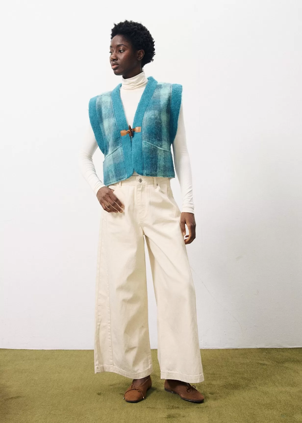 • Pantalon en denim• Coupe wide-leg• Découpes sur les côtés• Coutures contrastéesTaille :La mannequin porte …