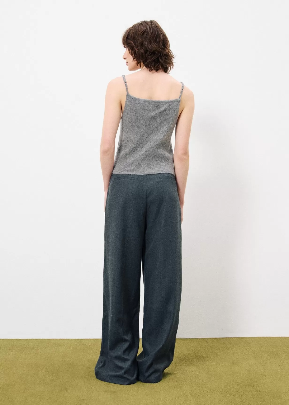 • Pantalon en tissu tailleur• Gris foncé avec rayures en vert• Plis à l’avantTaille :La mannequin porte une tail…